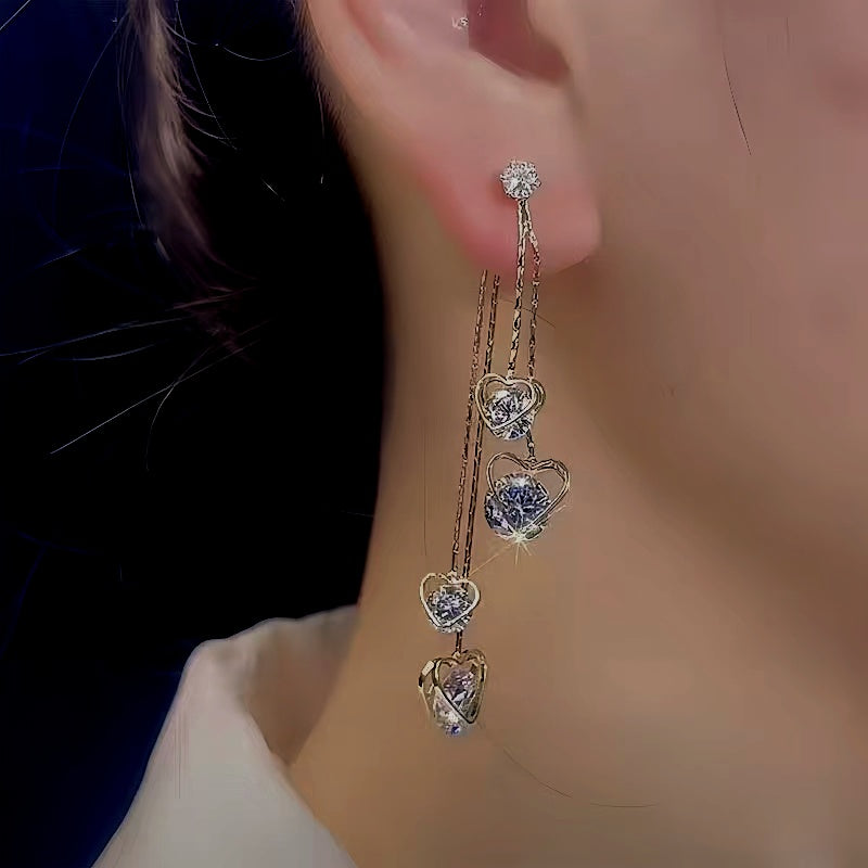 14K Gold-Plated Zircon Five-Pointed Star Tassel Earrings