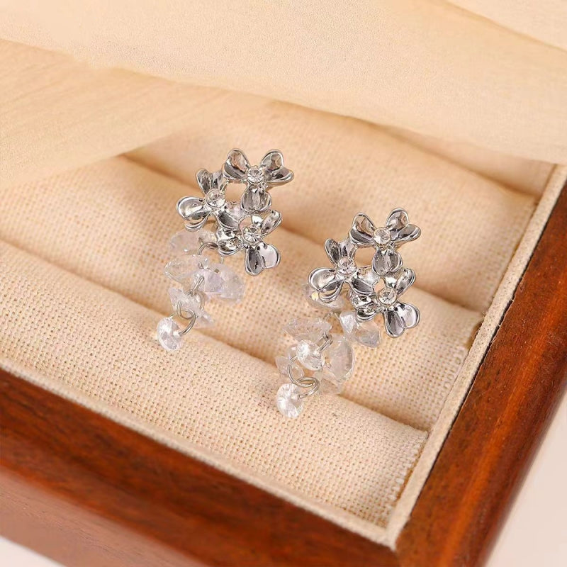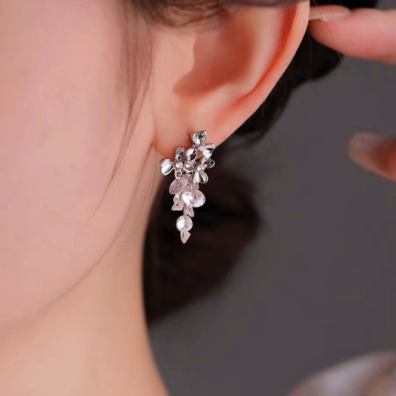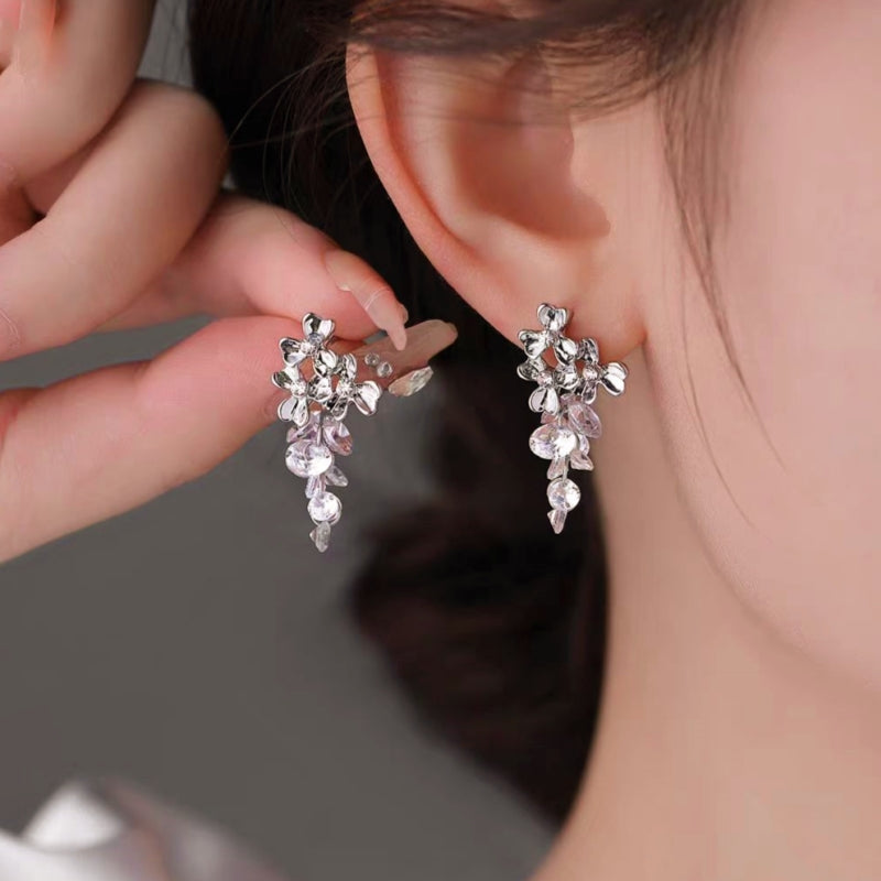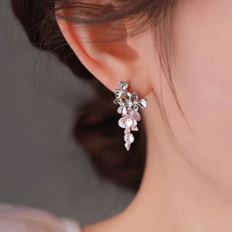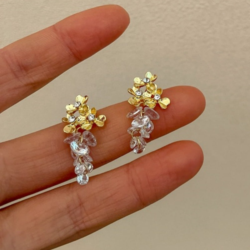 14K Gold-plated Zircon Flower Crystal Grape Earrings