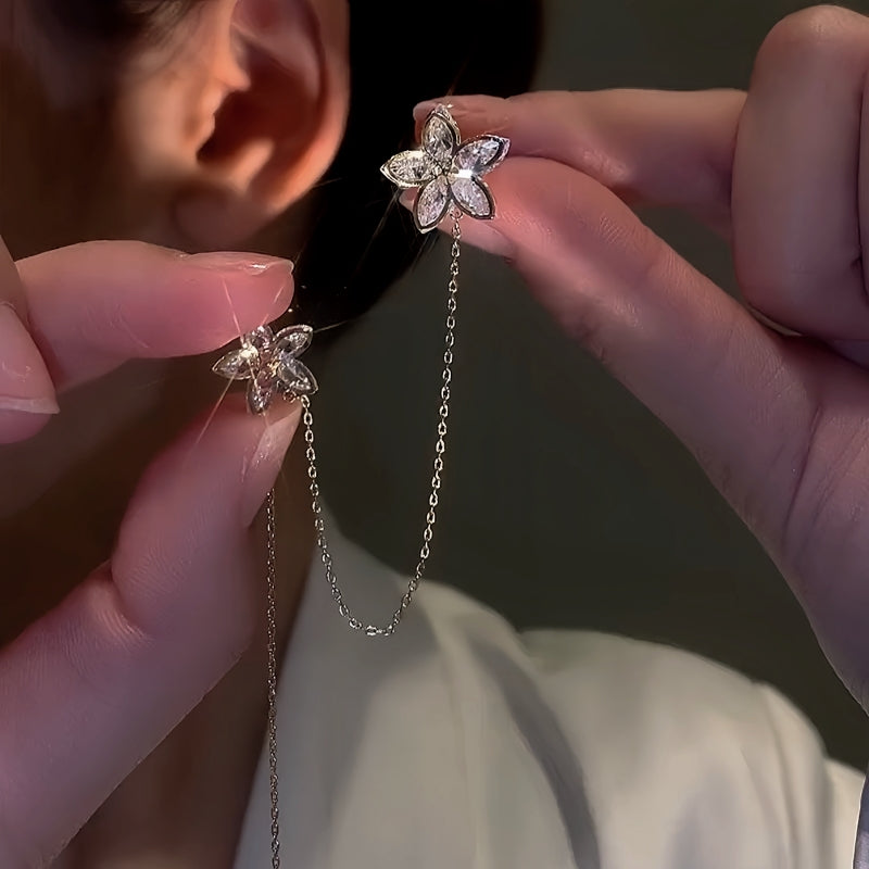 14K Gold-plated Zircon Flower Ear Clip Earrings ( 1 PCS )