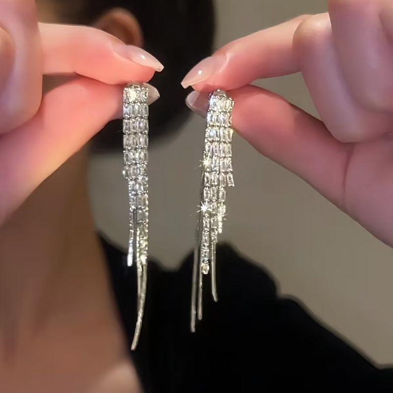 14K Gold-Plated Zircon Front And Back Tassel Earrings