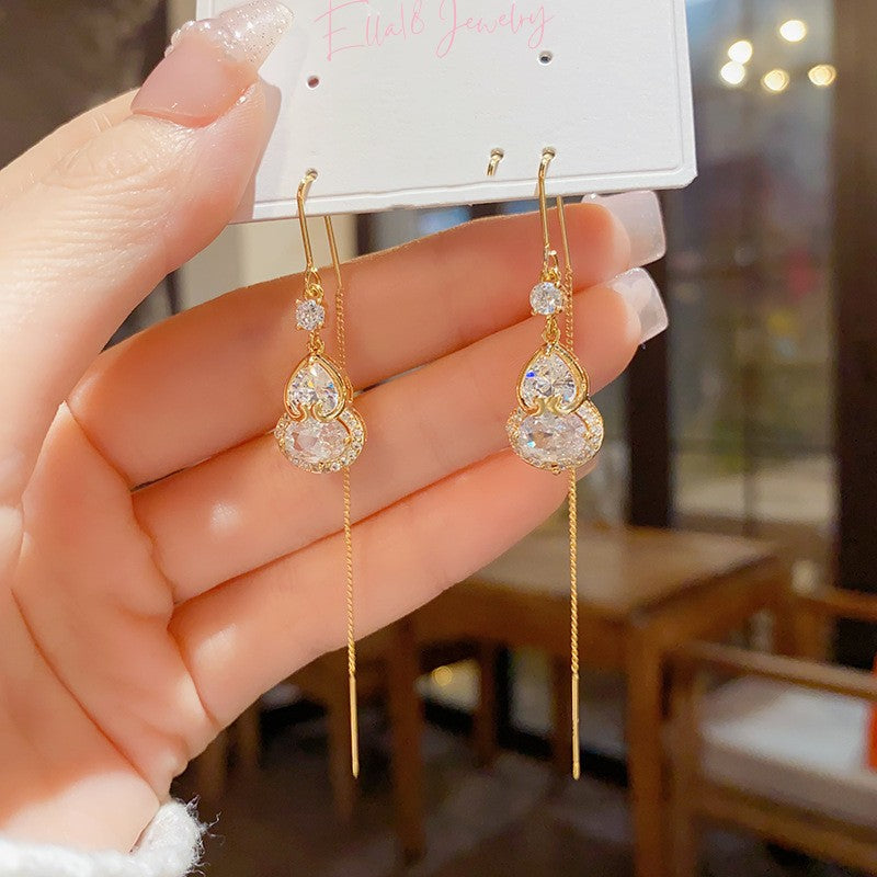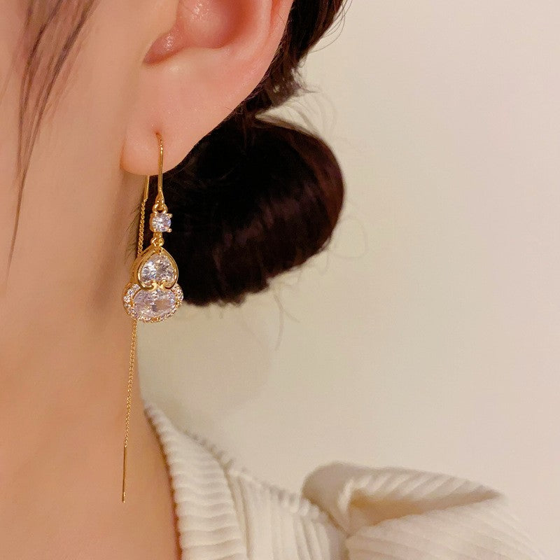 14K Gold Plated Zircon Gourd Threader Earrings