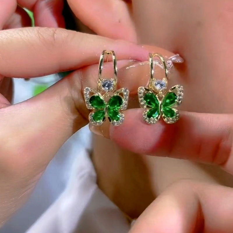 14K Gold-Plated Zircon Green Butterfly Earrings