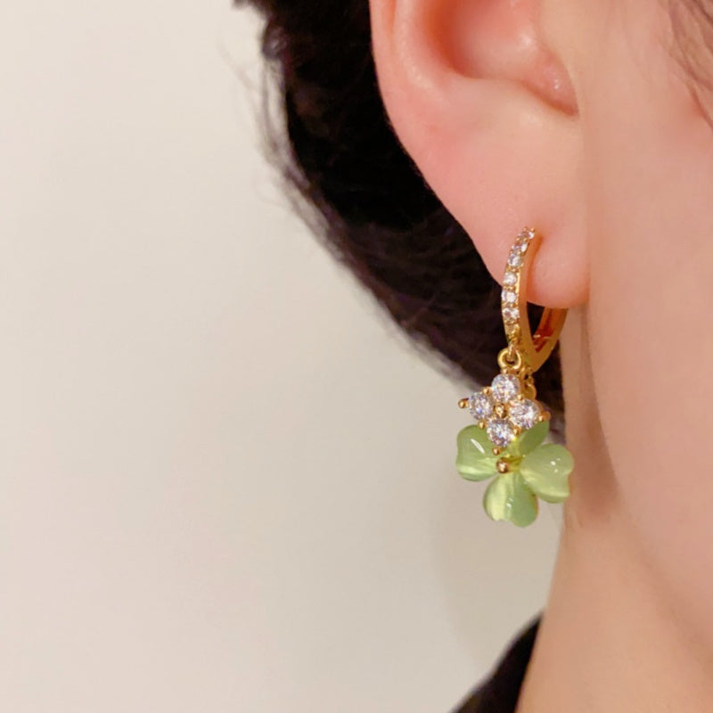 14K Gold-Plated Zircon Green Flower Earrings