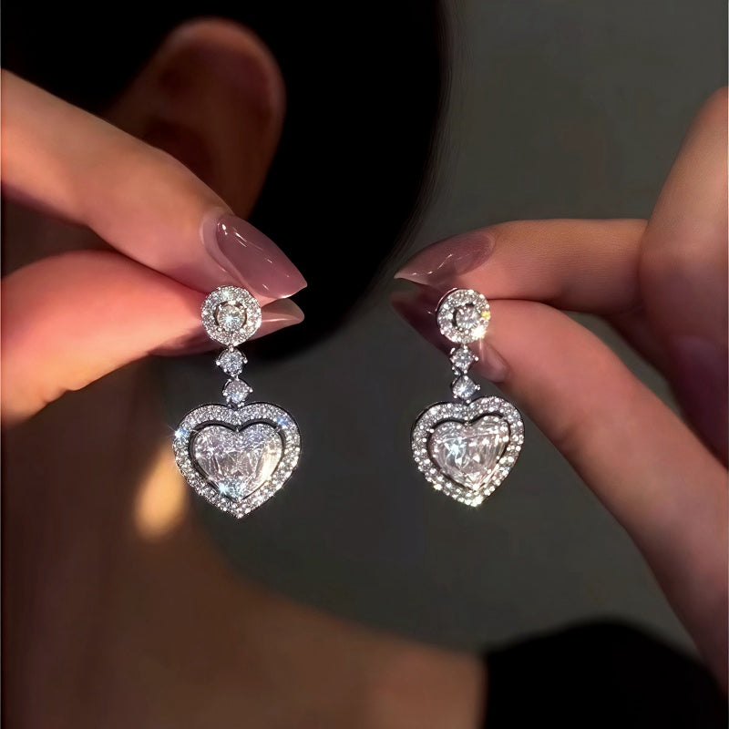 14K Gold-Plated Zircon Heart Earrings