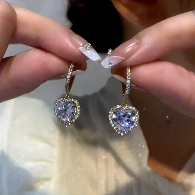 14K Gold-Plated Zircon Heart Earrings