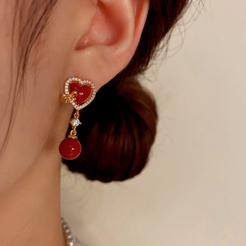 14K Gold-Plated Zircon Heart-Shaped Pearl Earrings