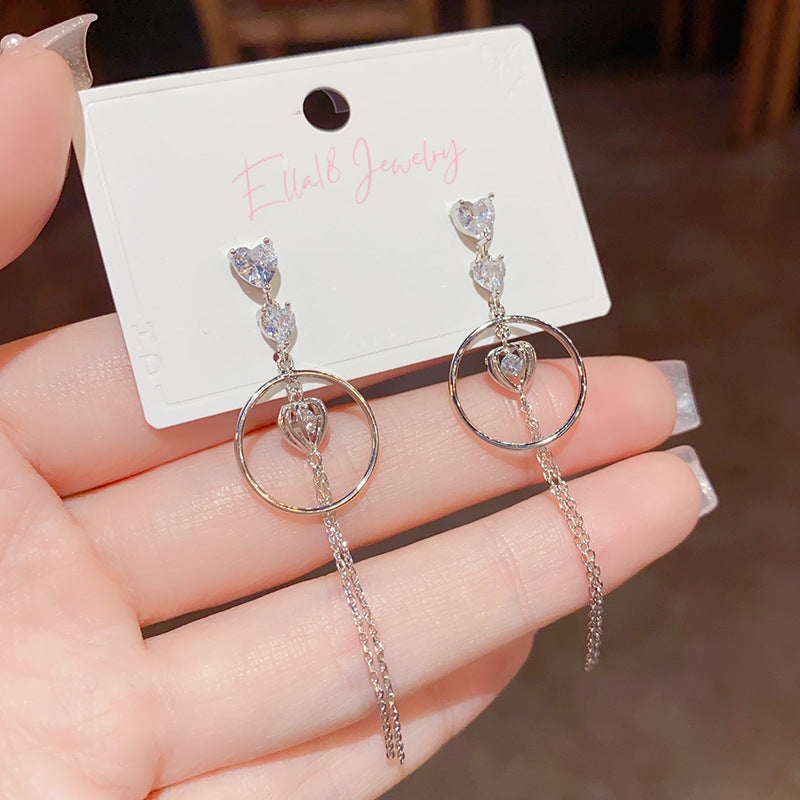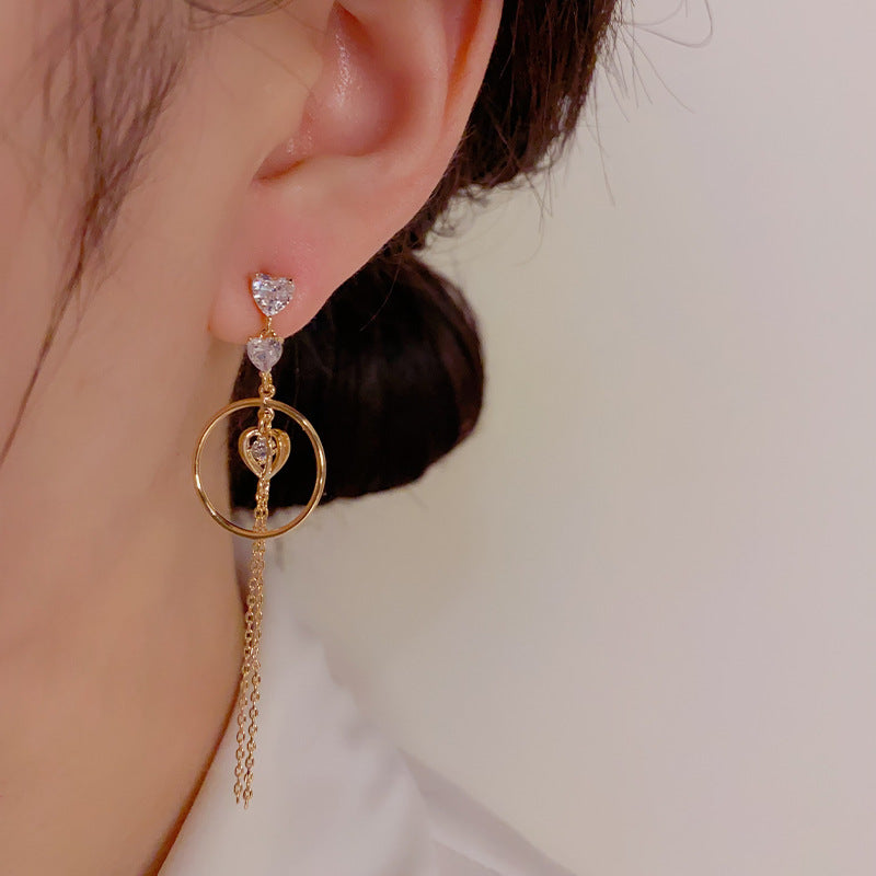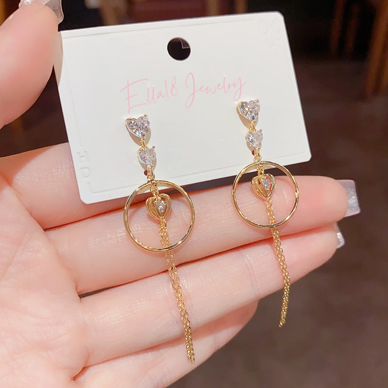 14K Gold-Plated Zircon Heart Tassel Earrings