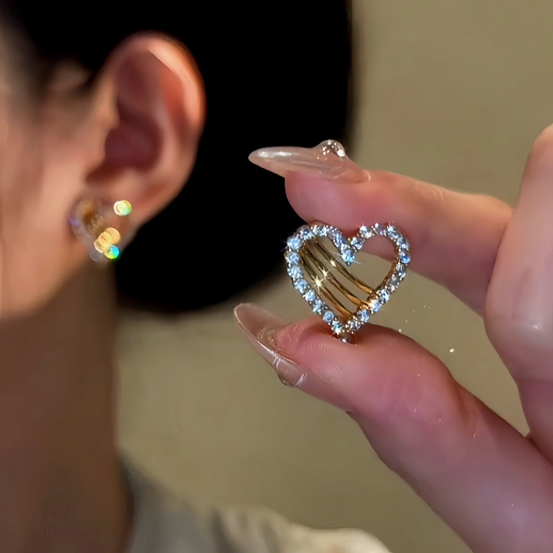 14K Gold-Plated Zircon Hollow Heart Earrings