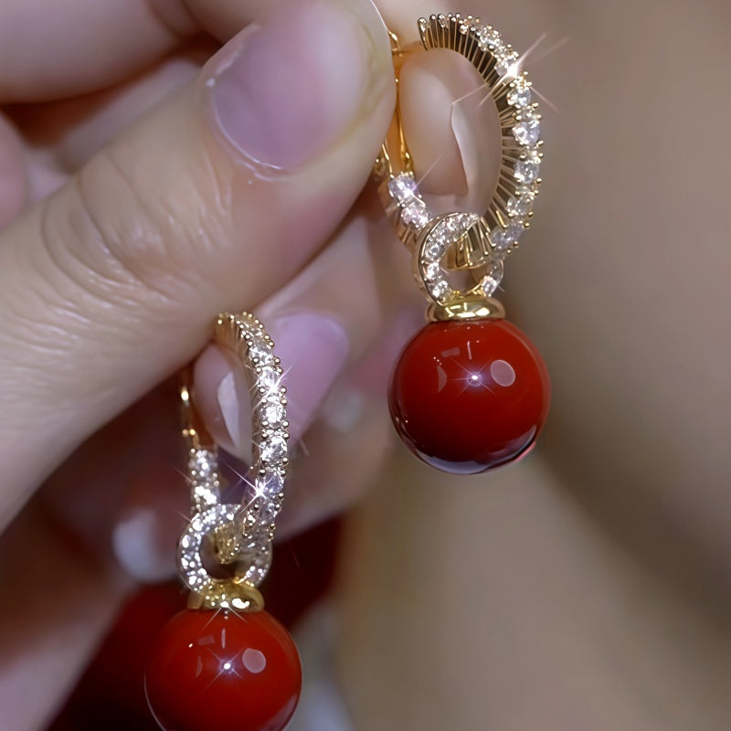 14K Gold-Plated Zircon Hoop Pearl Earrings