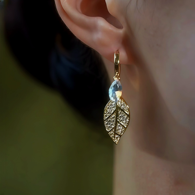 14K Gold-Plated Zircon Leaf Earrings