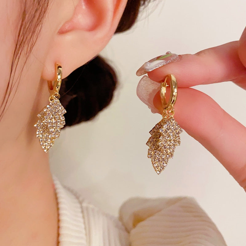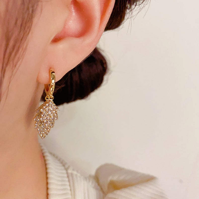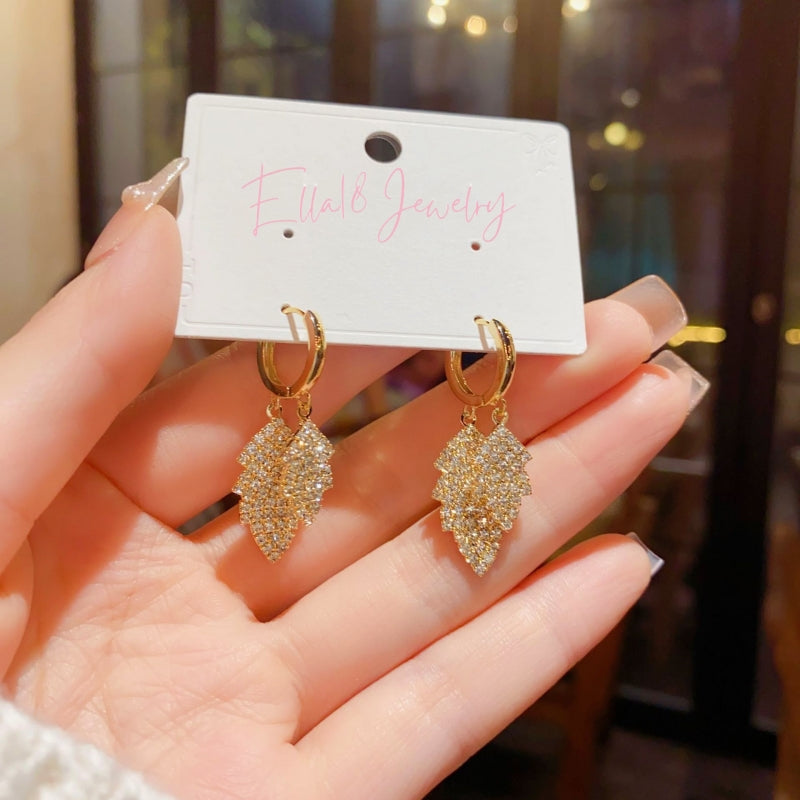 14K Gold Plated Zircon Leaf Earrings
