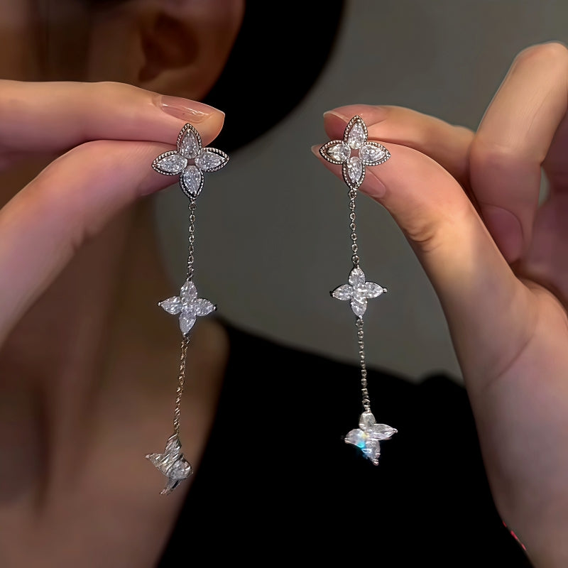 14K Gold-Plated Zircon Leaf Tassel Earrings