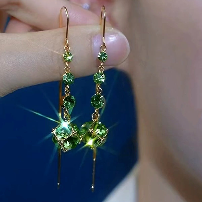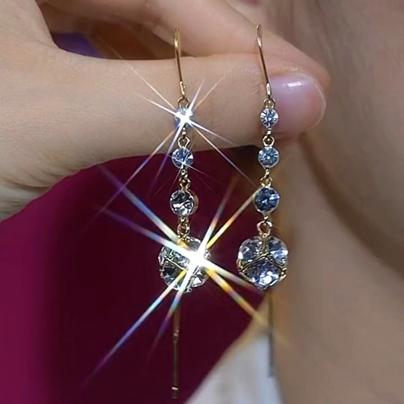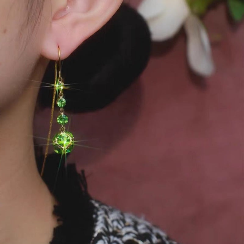 14K Gold-Plated Zircon Long Tassel Threader Earrings