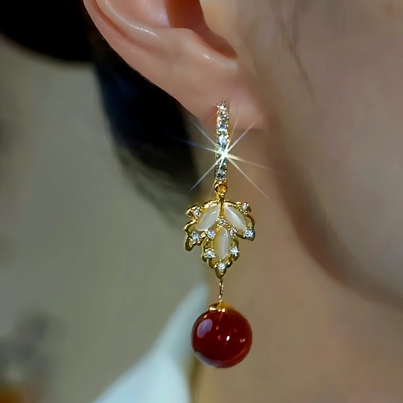 14K Gold-Plated Zircon Maple Leaf Pearl Earrings
