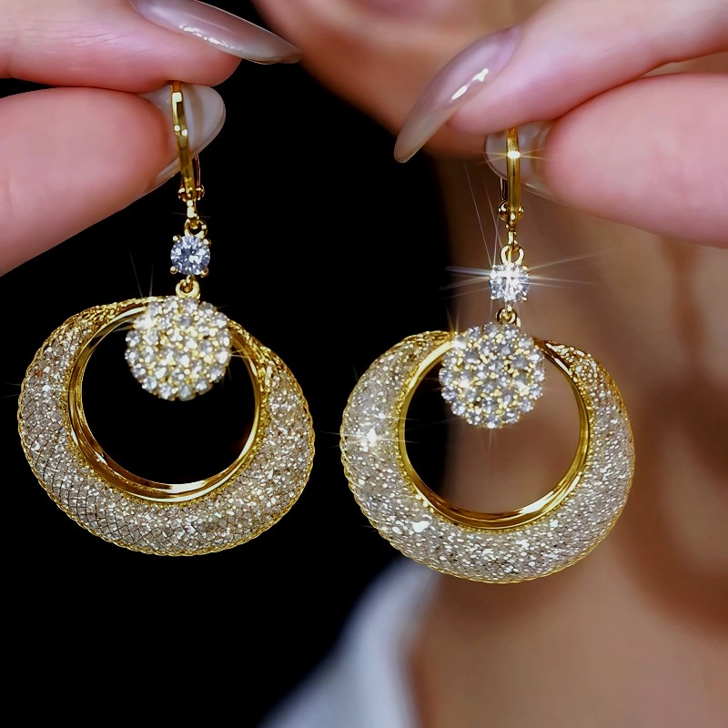 14K Gold-Plated Zircon Mesh Crystal Hoop Earrings
