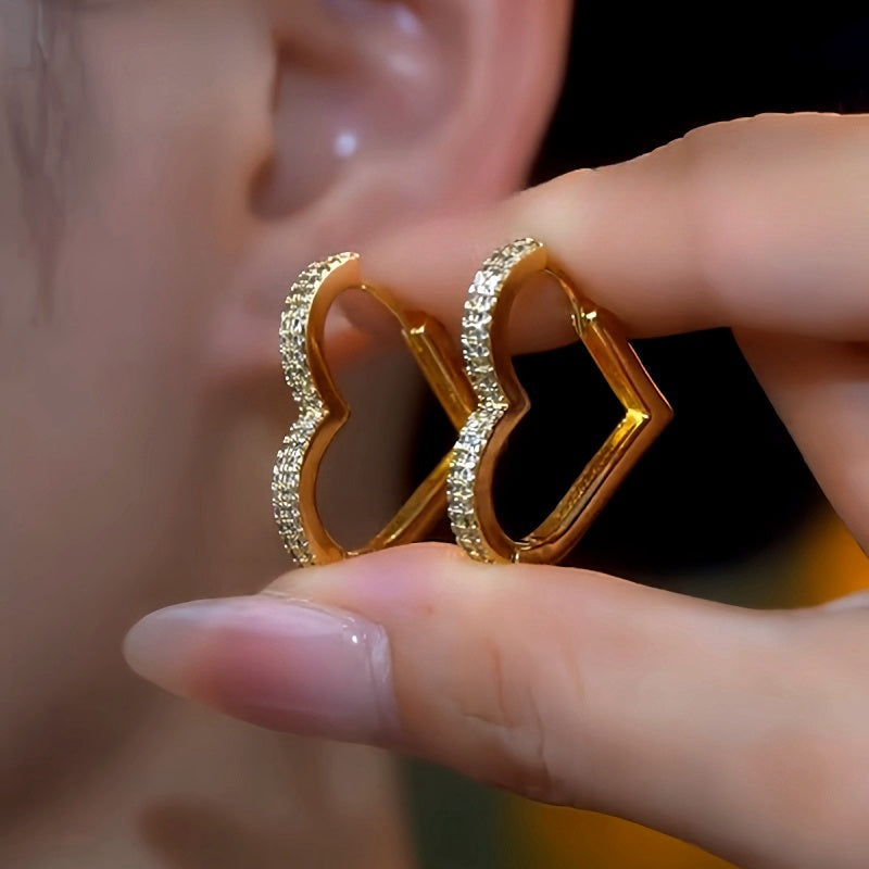 14K Gold-Plated Zircon Peach Heart-Design Earrings