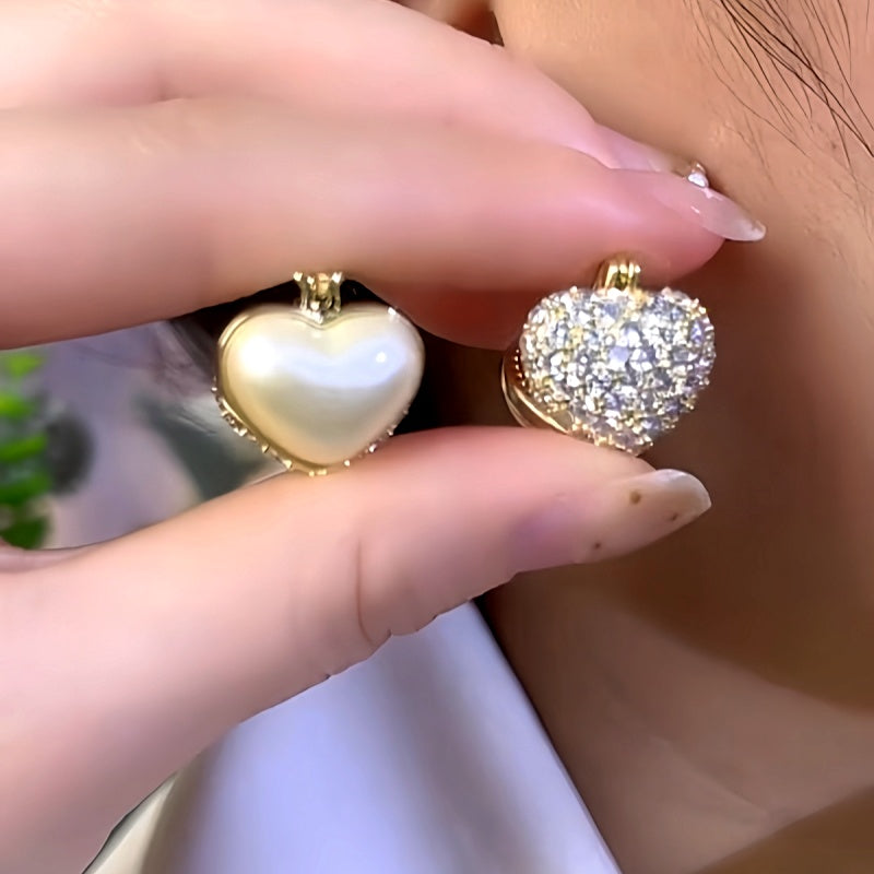 14K Gold-Plated Zircon Pearl Double-Sided Heart Earrings