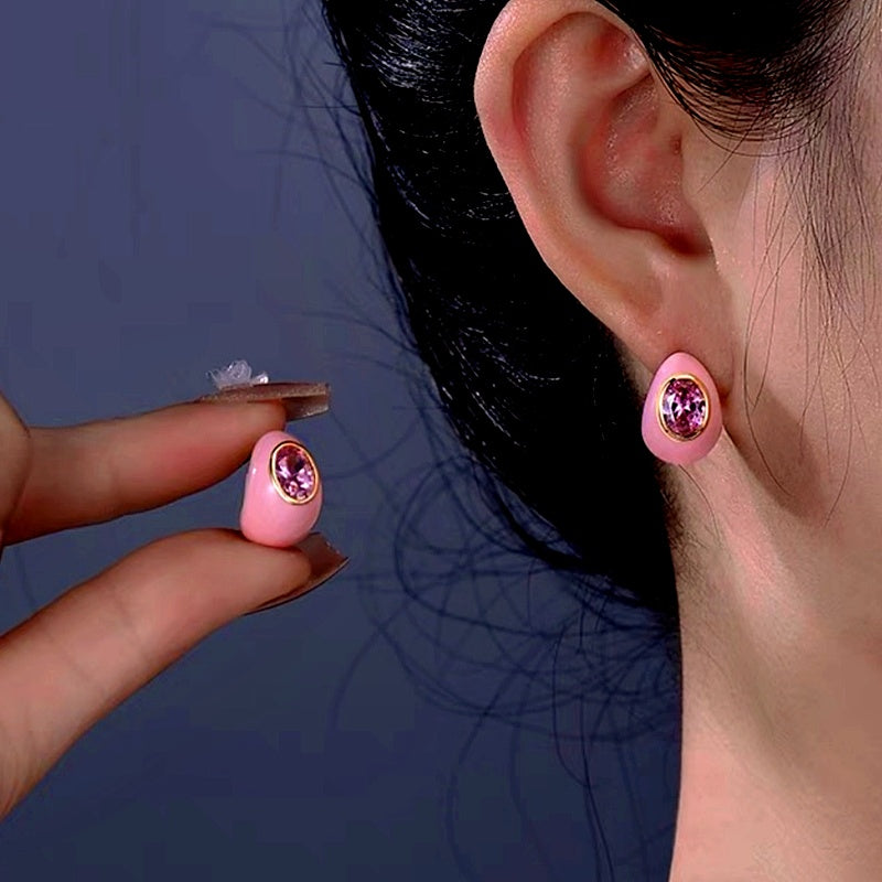 14K Gold-Plated Zircon Pink Water Drop Enamel Earrings