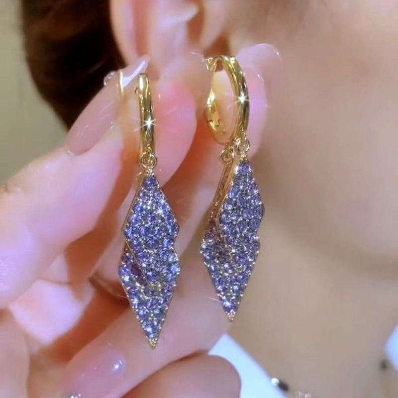 14K Gold-Plated Zircon Purple Diamond Earrings