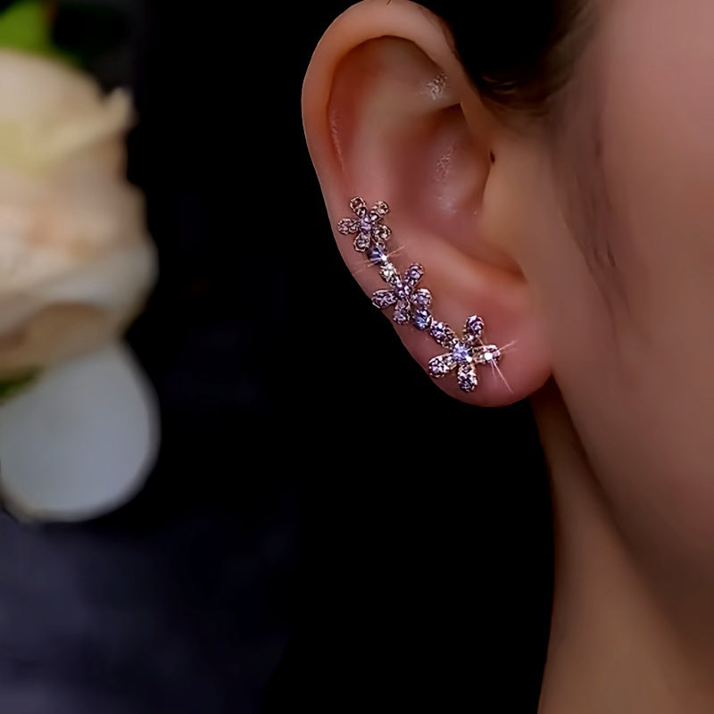 14K Gold-Plated Zircon Purple Flower Crawler Earrings