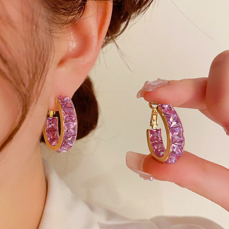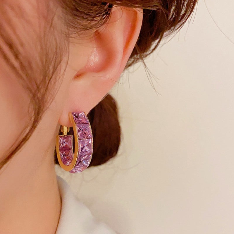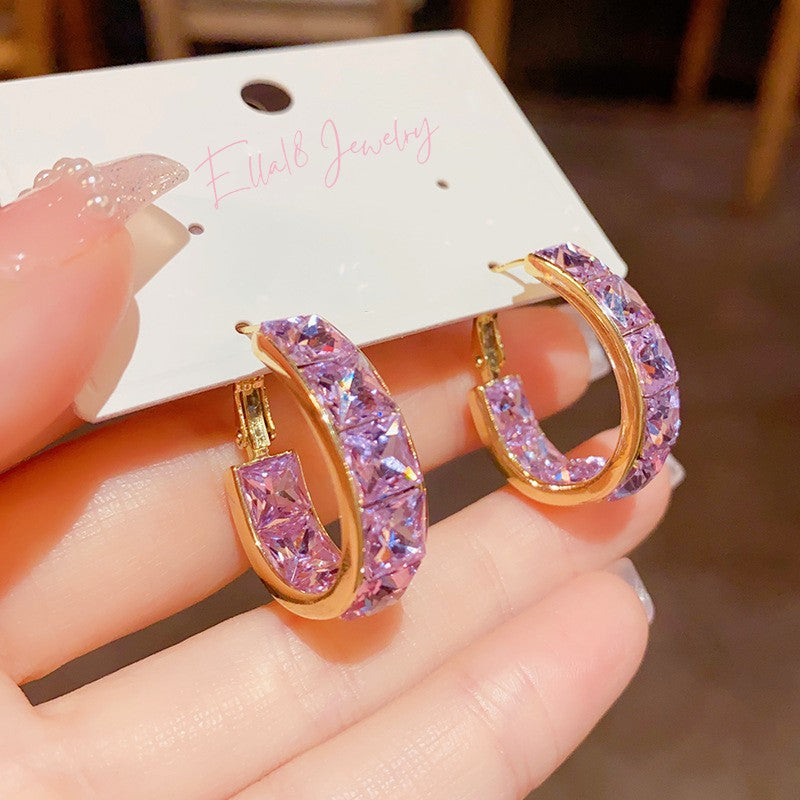 14K Gold Plated Zircon Purple Hoop Earrings