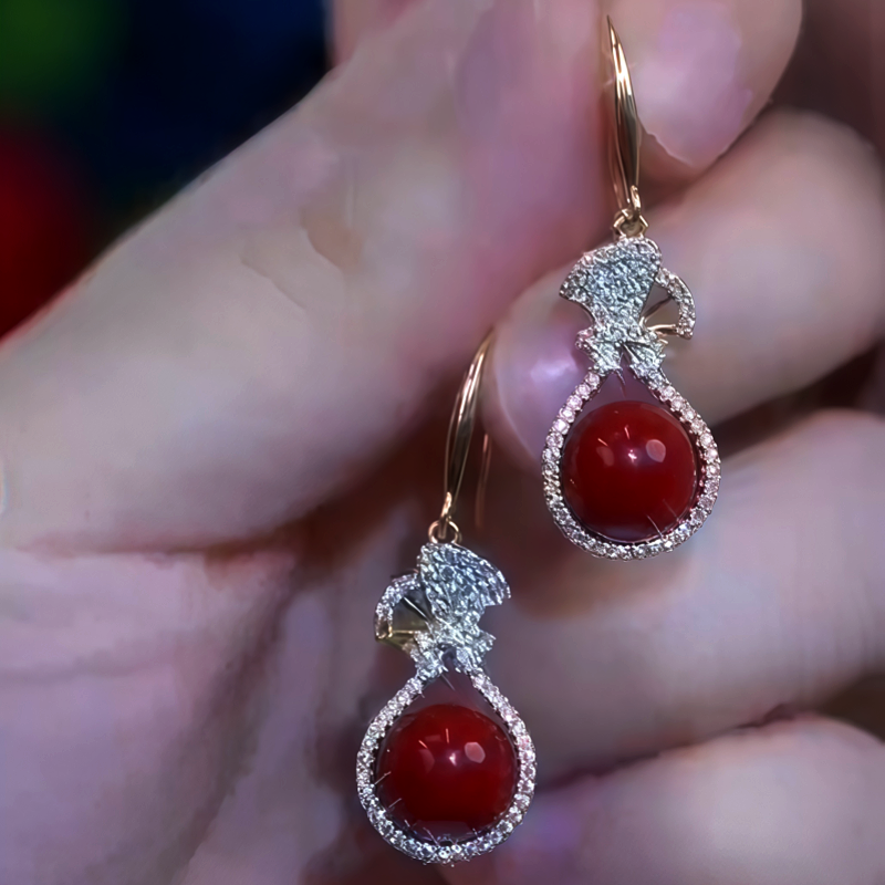 14K Gold-Plated Zircon Red Pearl Ear Hook Earrings