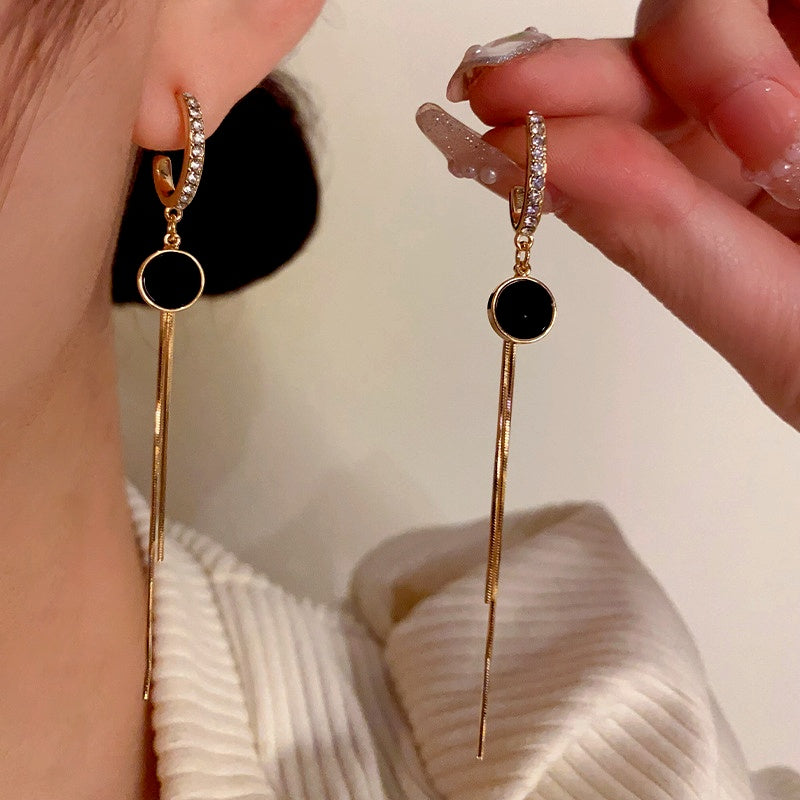 14K Gold-Plated Zircon Round Plate Tassel Earrings