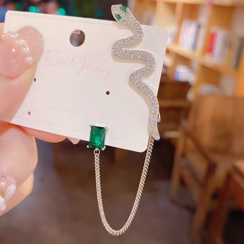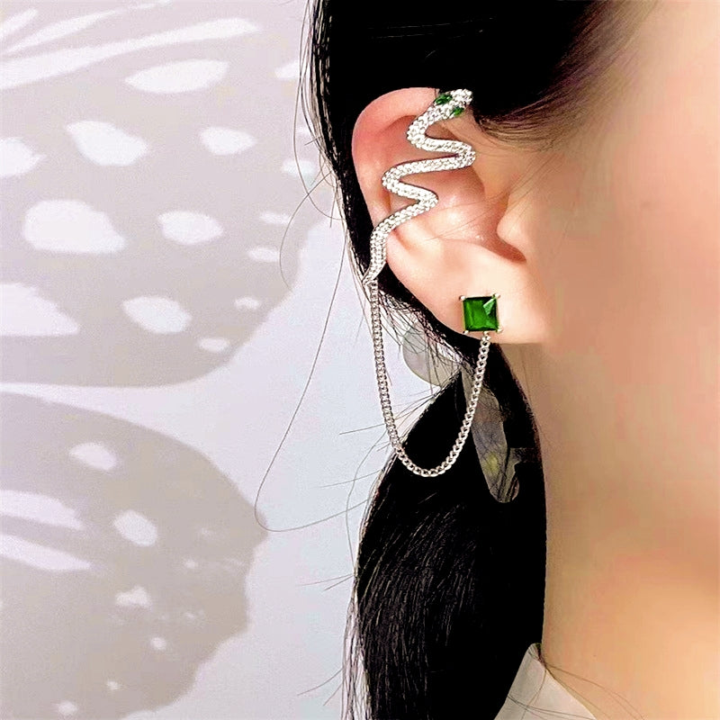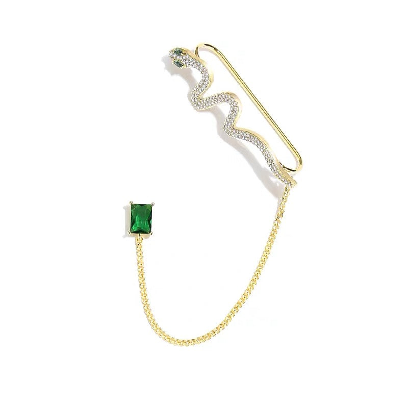 14K Gold-Plated Zircon Snake Curved Ear cuff Earrings