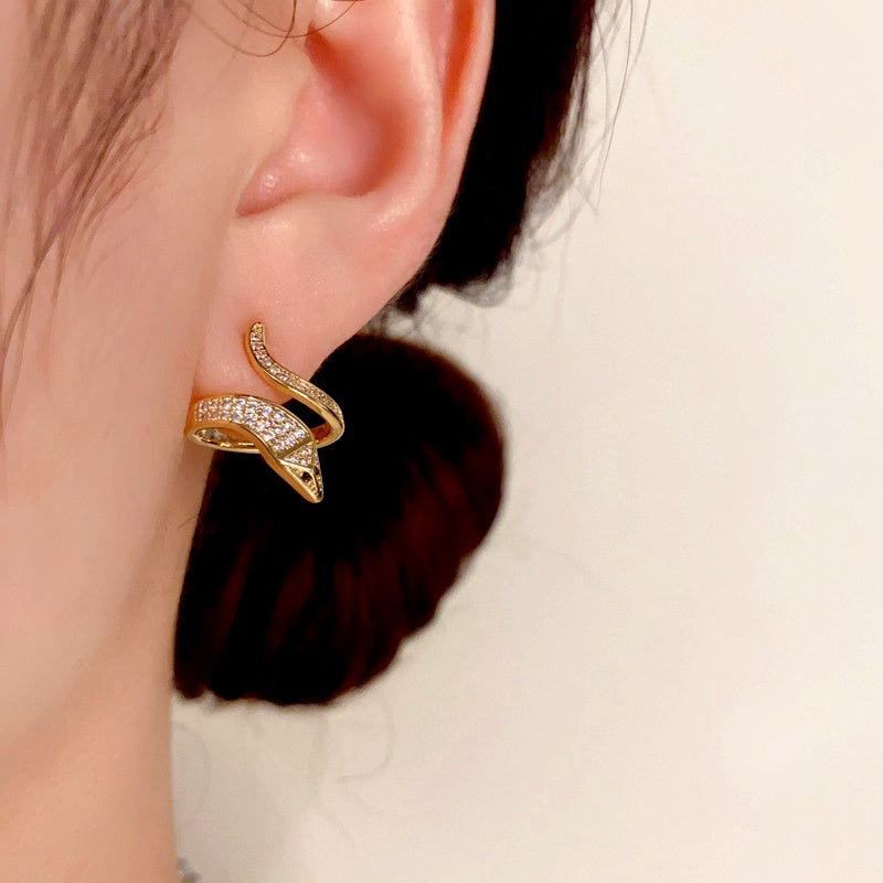 14K Gold-Plated Zircon Snake-Shaped Earrings