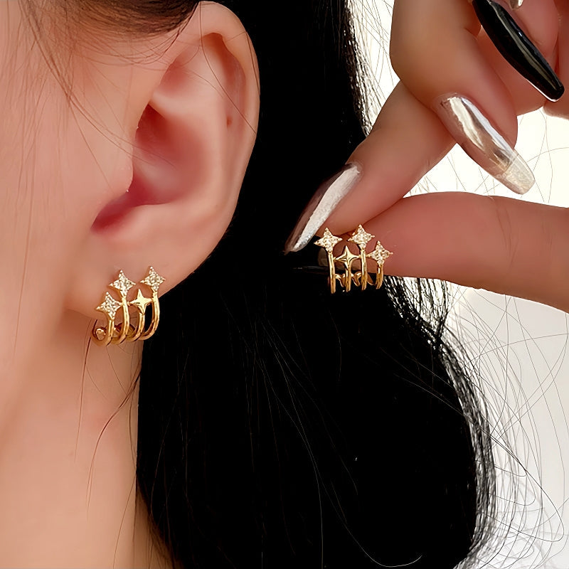 14K Gold-Plated Zircon Star Stud Earrings