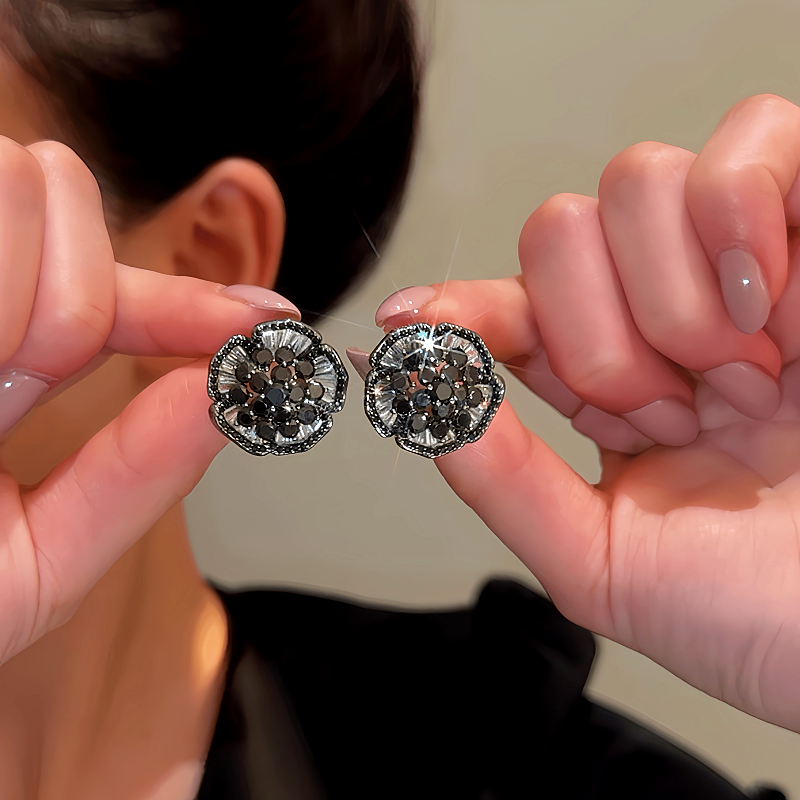 14K Gold-Plated Zircon Vintage Black Flower Earrings