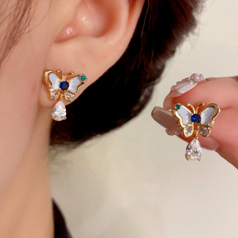 14K Gold-Plated Zircon Water Drop Butterfly Earrings