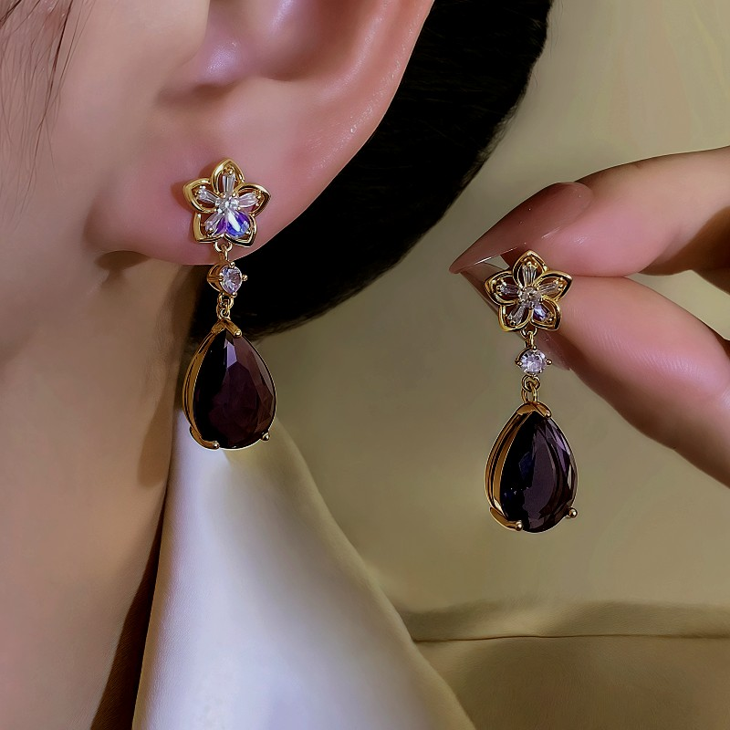 14K Gold-Plated Zircon Water Drop Earrings