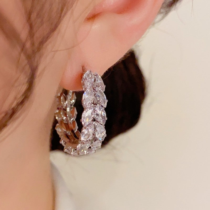 14K Gold-Plated Zircon Wheat Earrings