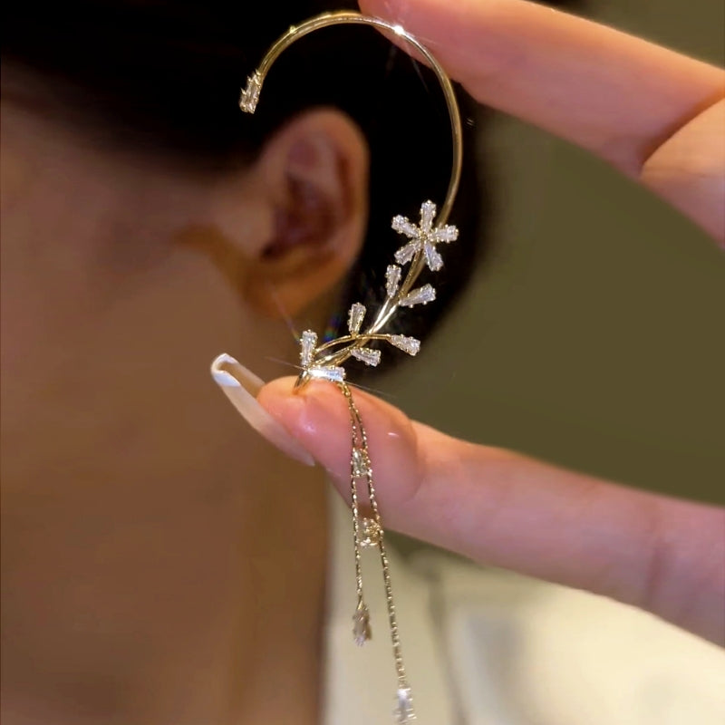 14K Gold-plated Zircon Wheat Flower Ear Cuffs