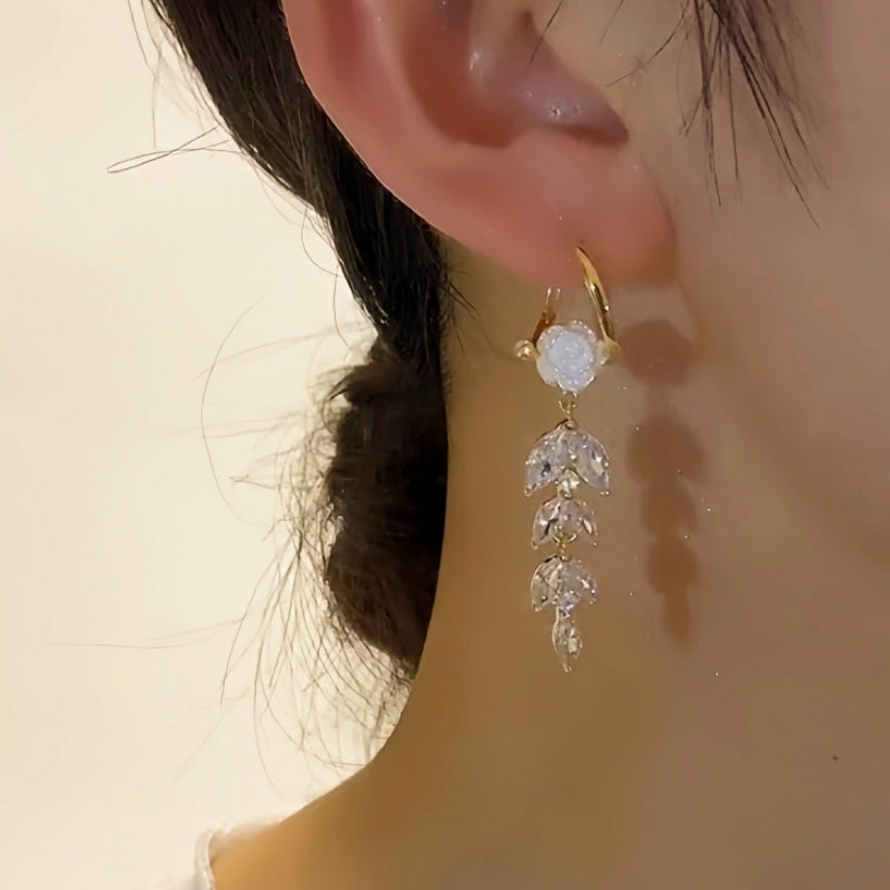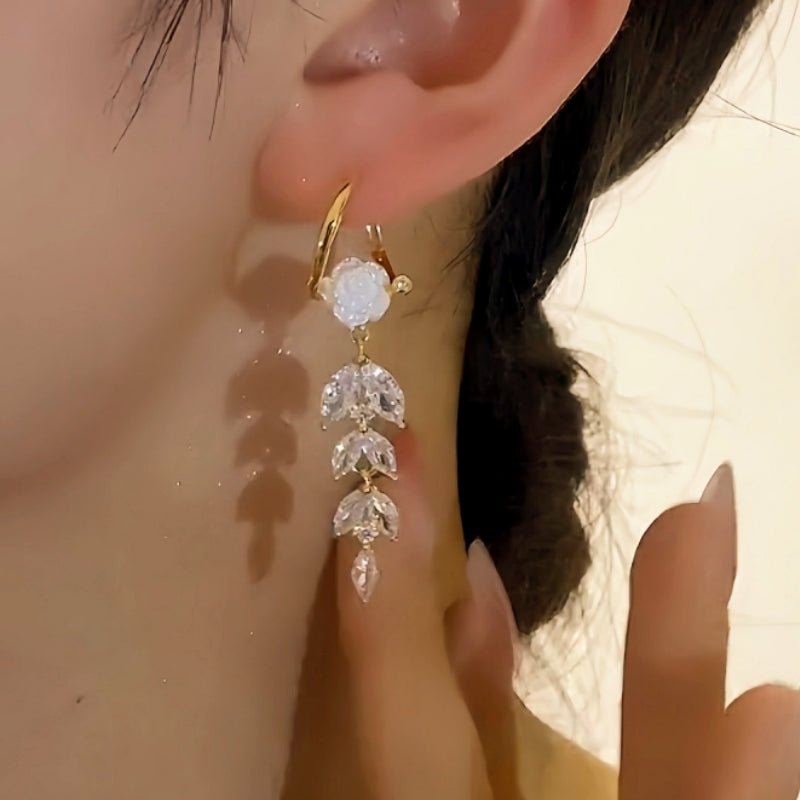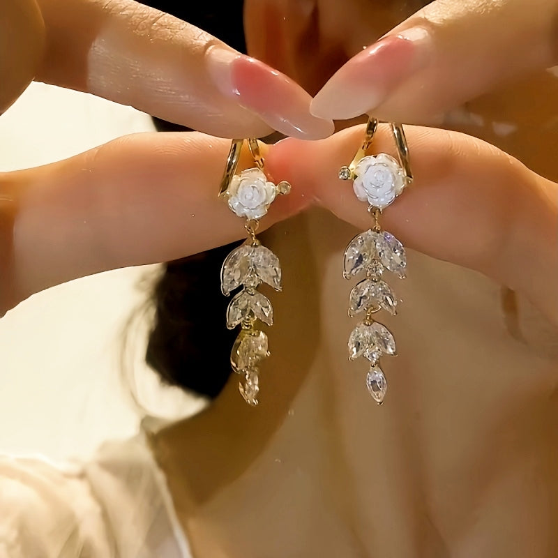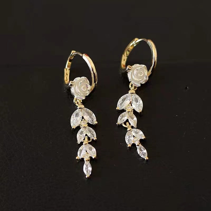 14K Gold-plated Zircon Wheat Rose Flower Earrings
