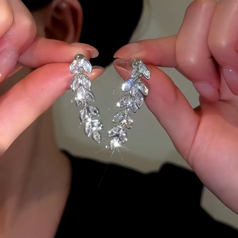 14K Gold-Plated Zircon Wheat Tassel Earrings