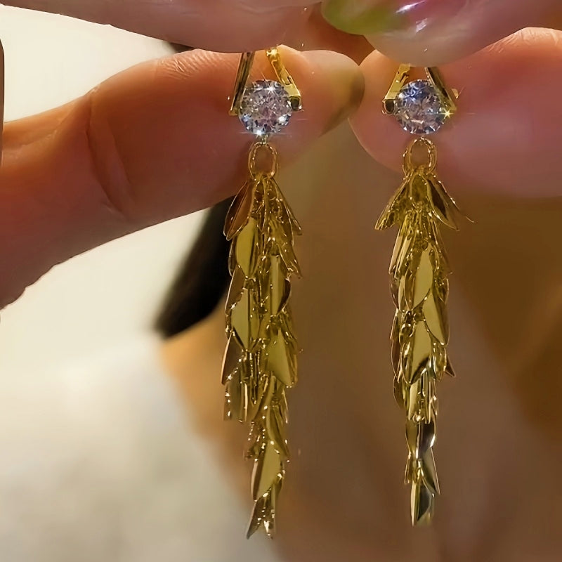 14K Gold-plated Zircon Wheat Tassel Earrings