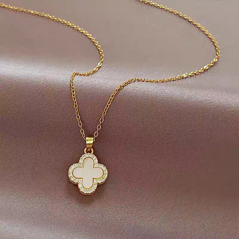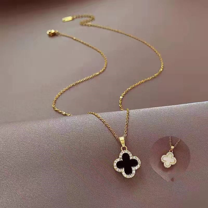 18K Gold Black And White Four-Leaf Clover Necklaces