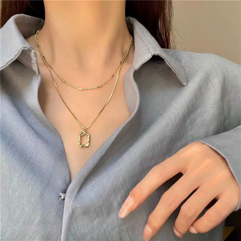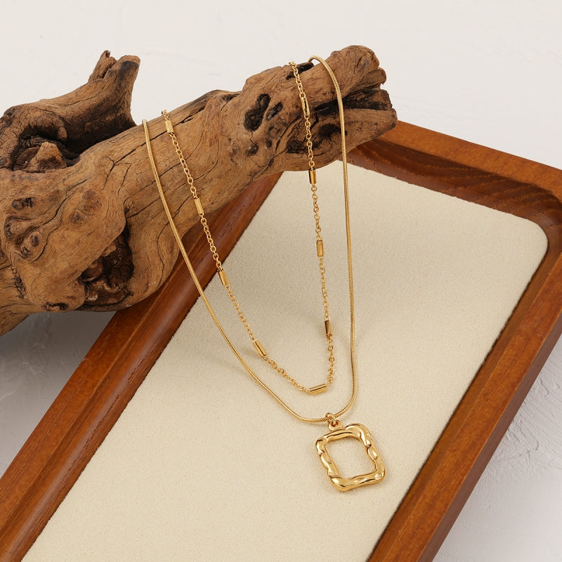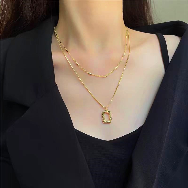 18K Gold-Plated Art Frame Double-Layered Necklaces