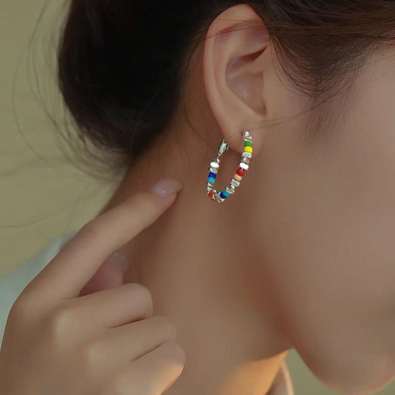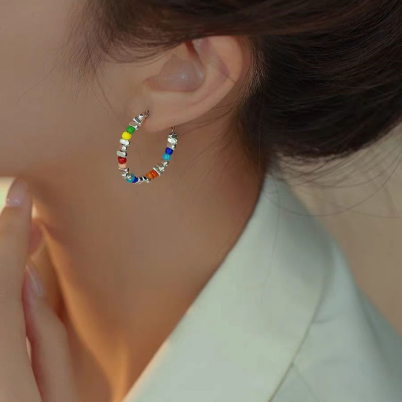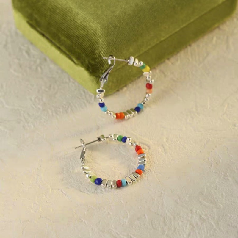 18K Gold-Plated Beads Broken Silver Colorful Earrings