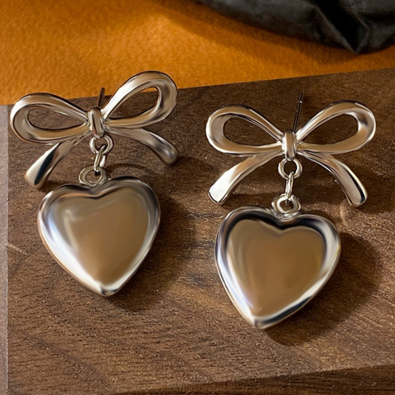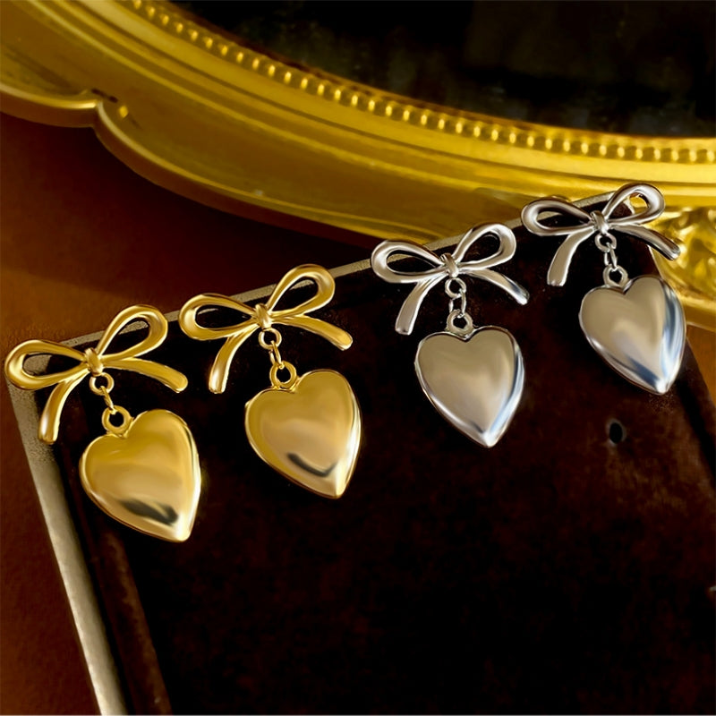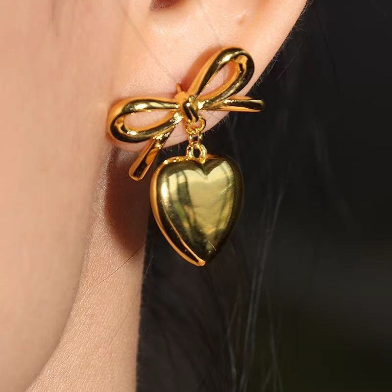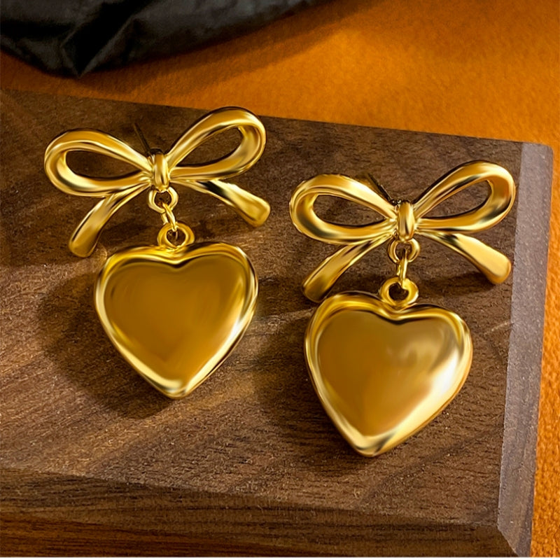 18K Gold-plated Bow Heart-Design Earrings