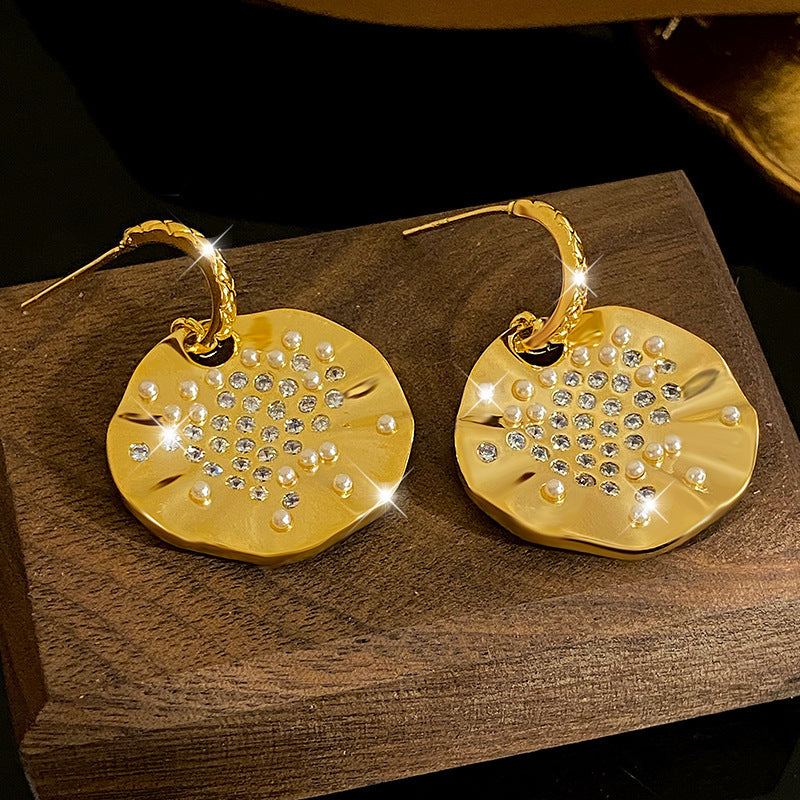 Made of Alloy, with a 18k gold layer on it, which means it will last longer (at least 3 months).