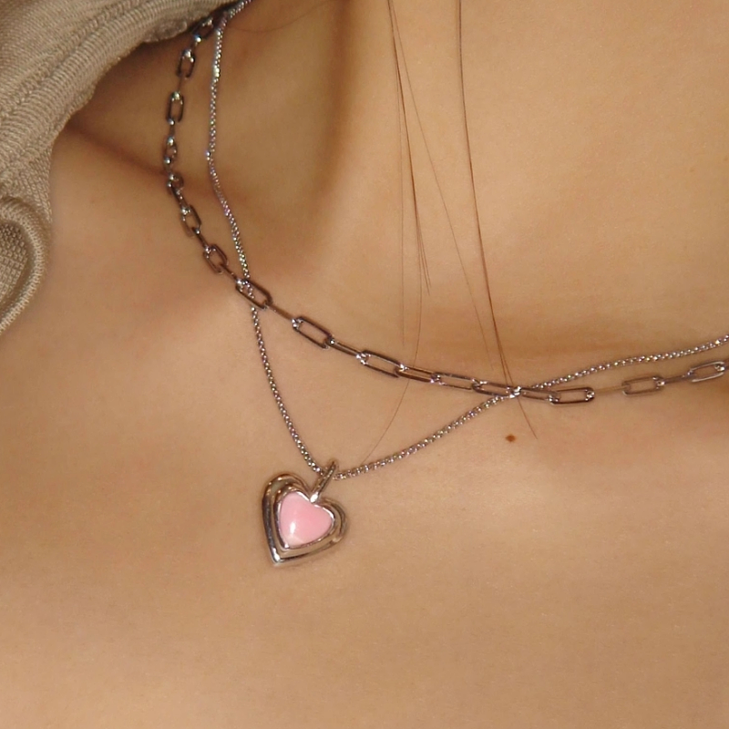 18K Gold-Plated Double-Layer Pendant Pink Heart Necklace