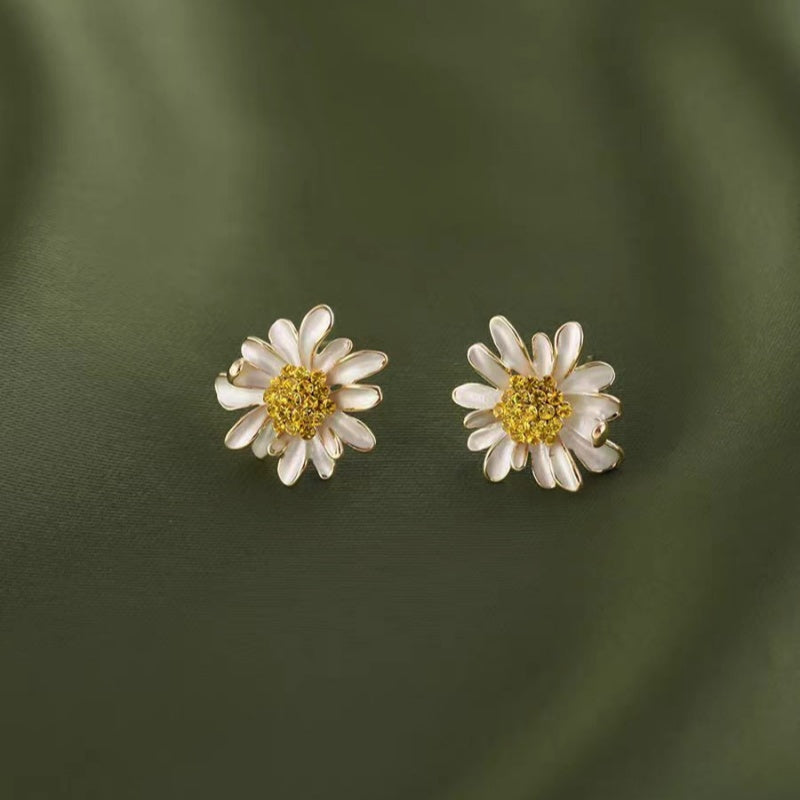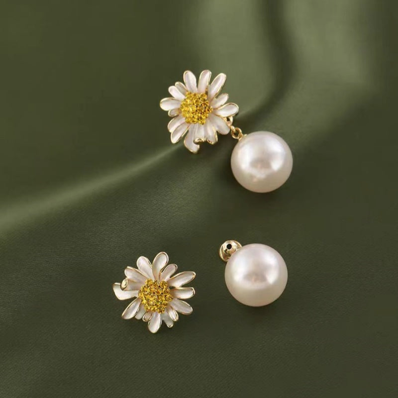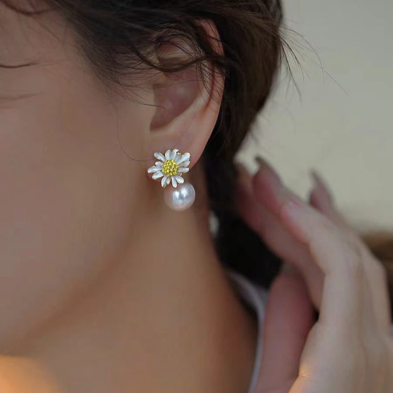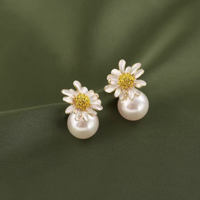 18K Gold-plated Elegant Small Daisy Artificial Pearl Earrings