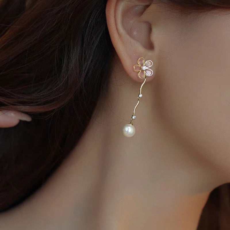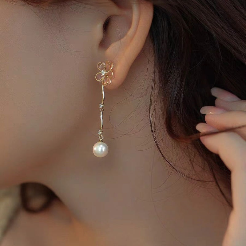 18K Gold-plated Elegant Super Fairy Sweet Flower Pearl Earrings