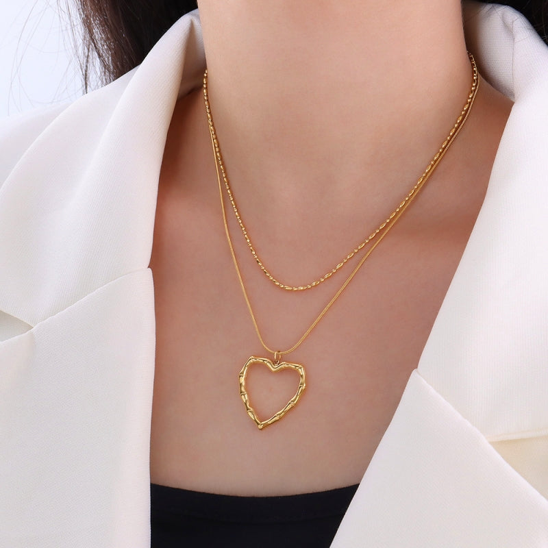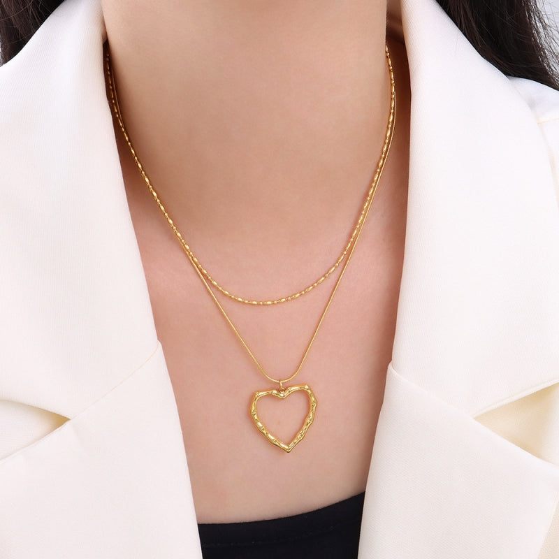 18K Gold-Plated Heart-Design Double-Layer Clavicle Chain Necklaces