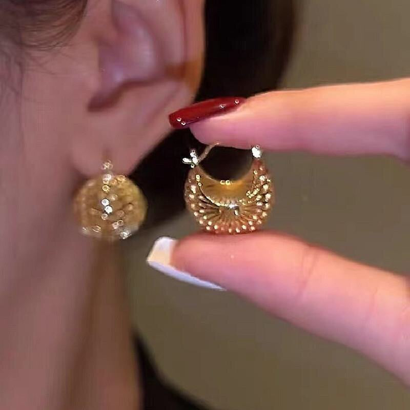 Made of brass, with a 18k gold layer on it, which means it will last longer (at least 6 months).