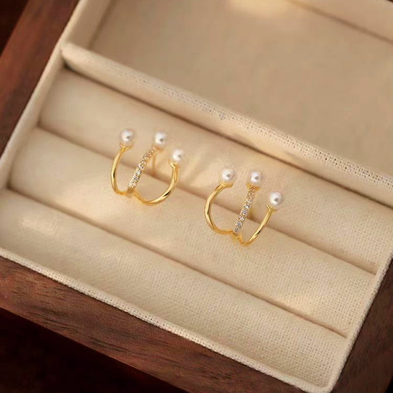 18K Gold-plated Pearl And Diamond Studs