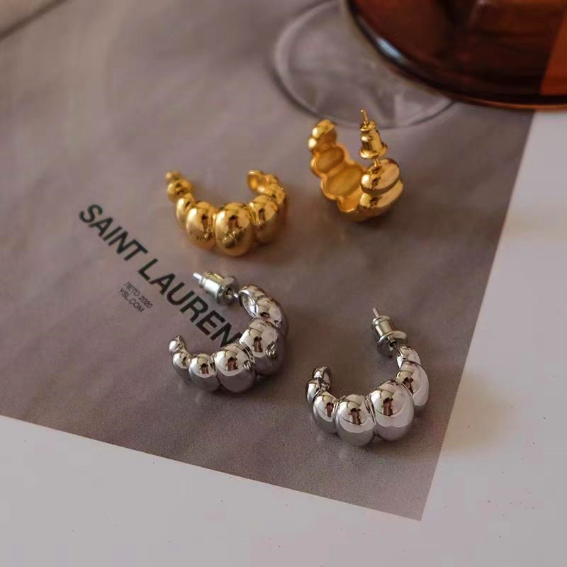 18K Gold-Plated Polished C-Shaped Earrings